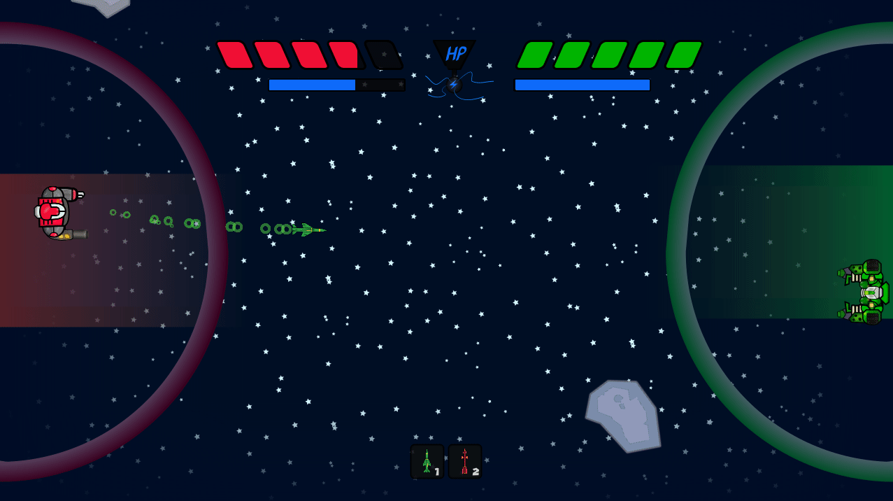 Ayman would program one side of the game, while I programmed the other. I spent most of my time on the player controllers, AI, and menus. He spent his time working on asteroids, the health and energy bars, collisions, and other things. He also seemed to assemble every sound file into a functional part of the game, autonomously. I never even touched sound in the game, he did it all fantastically, and thanks to DimX’s work.
